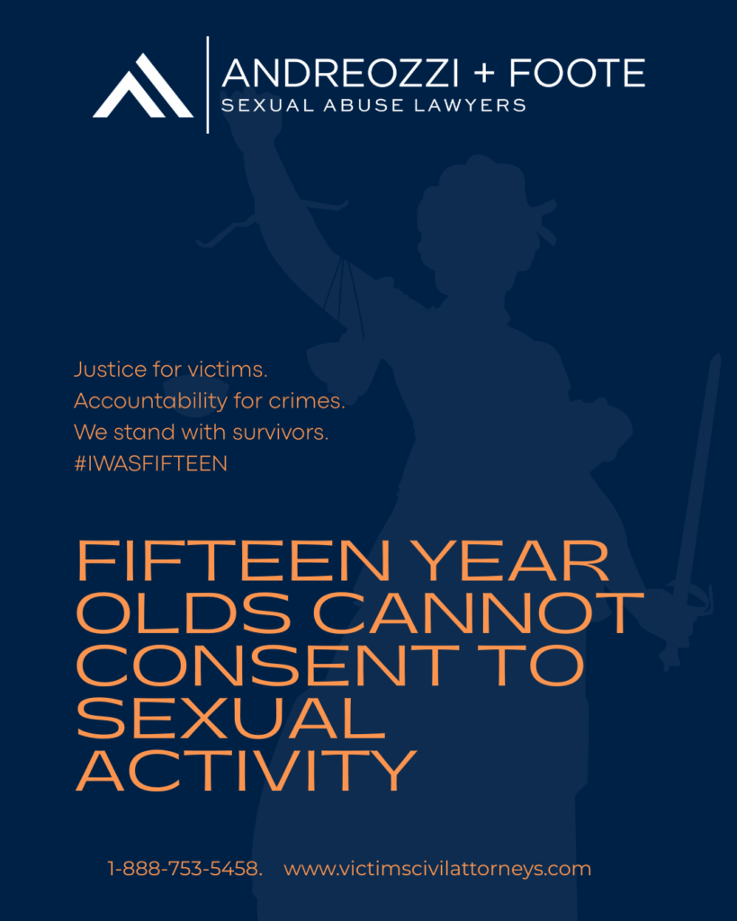 Under U.S. law, 15-year-olds are children. They cannot legally consent to sex with adults. Any adult who has sex with a 15-year-old is committing sexual abuse, statutory rape, or a related crime. Full stop.